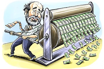Ao emitir mais e mais dólares, forçando a baixa do valor do dólar.