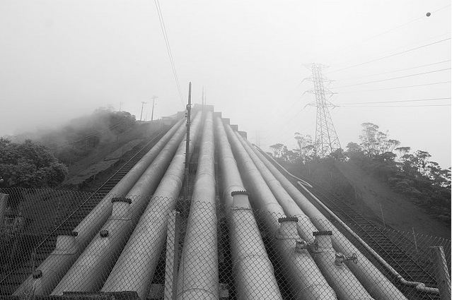 No caminho entre o litoral paulista e a cidade de São Paulo, uma série de tubulações que se erguem pelo gigantesco paredão rochoso da Serra do Mar chamam a atenção.
