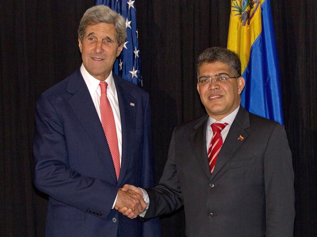 John Kerry e o chanceler da Venezuela, Elías Jaua – Foto: AP