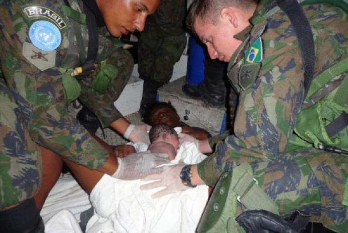 Desde que assumiu a liderança do comando militar da MINUSTAH, em 2004, as tropas brasileiras sempre desfrutaram de uma boa relação com o povo haitiano. E isso se deve principalmente às características dos militares brasileiros, de sempre estarem dispostos a ajudar. Movidos por esse espírito de solidariedade, os soldados da FAB Demorvã Diego Canton e Kauê Correa dos Santos Frois realizaram, em 2012, um parto durante uma patrulha noturna. Uma jovem haitiana, já com contrações, e seu marido procuravam por auxílio em uma das avenidas escuras de Porto Príncipe. Os primeiros atendimentos ocorreram no local e o pequeno Junas nasceu às 5 horas daquela quarta-feira (18/07/2012), na viatura.