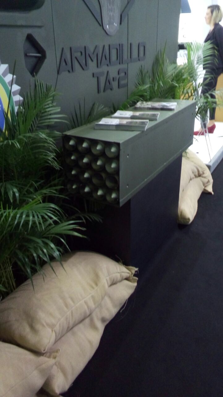 Trata-se do Sistema ARMADILLO TA-2, uma torre móvel que integra um sistema de armas de foguetes de saturação de 70 mm e que pode ser montada em qualquer veículo militar 4×4 capaz de transportar cargas militares de aproximadamente 1,5 ton.