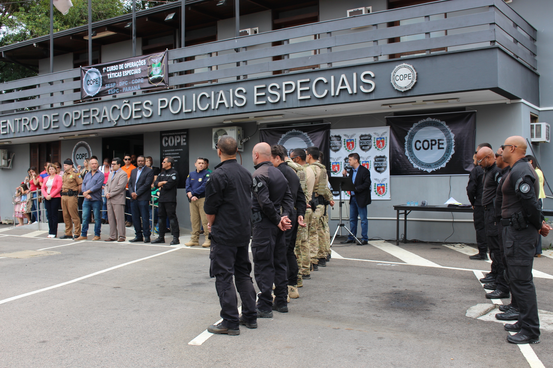 Dez alunos do Curso de Operações Táticas Especiais (Cote) 2017, ministrado pela primeira vez pelo Centro de Operações Policiais Especiais (Cope), formaram-se na manhã desta sexta-feira (12/12). A cerimônia de encerramento foi realizada na sede do Cope e contou com a presença do delegado-geral da Polícia Civil, Júlio Cezar dos Reis.