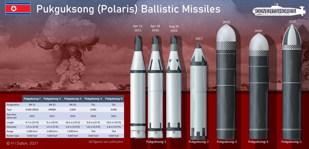 A Coreia do Norte alcançou posteriormente esse marco com o Pukguksong-2, uma variante terrestre e móvel do Pukguksong-1, em seu 12º teste do míssil em 12 de fevereiro de 2017.