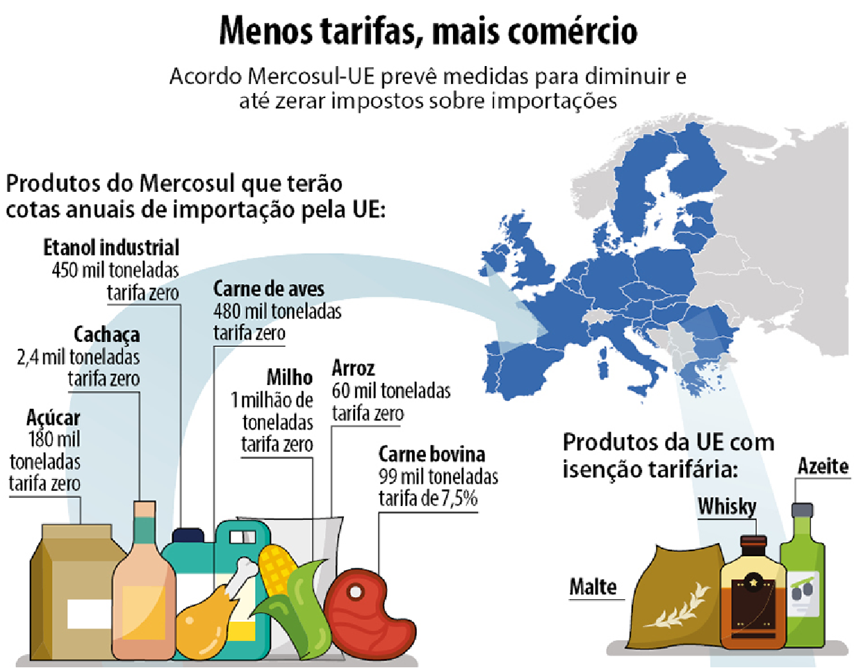 Produtos agrícolas e agroindustriais, considerados sensíveis, serão os principais alvos de quotas e outros tratamentos não tarifários, representando cerca de 3% dos bens e 5% do valor importado pela União Europeia.