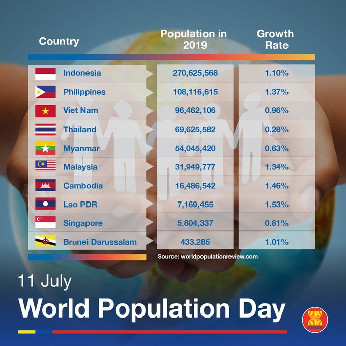 Composta por dez países que juntos possuem uma população de cerca de 660 milhões de pessoas, esta região é uma das mais densamente povoadas do mundo. Em comparação com outras regiões, a ASEAN possui uma população superior à da União Europeia (aproximadamente 450 milhões) e aos Estados Unidos (cerca de 330 milhões). Essa densidade populacional gera tanto oportunidades quanto desafios para os países membros, que enfrentam questões complexas relacionadas ao desenvolvimento socioeconômico.