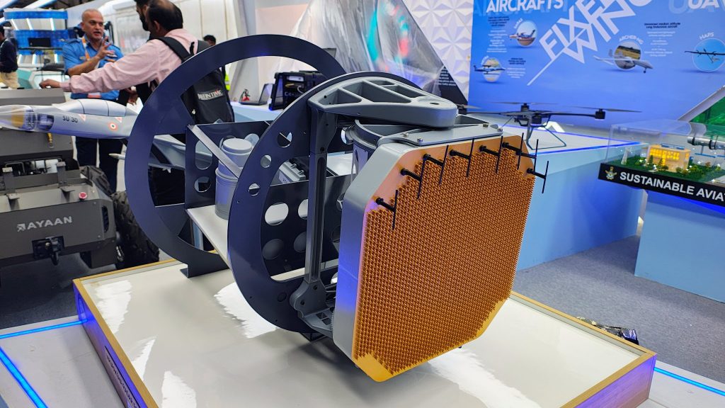 Um dos diferenciais mais interessantes do Virupaksha é o uso de um reposicionador mecânico que amplia o campo de visão do radar: ele pode se mover até ±90° no azimute e ±20° em inclinação. Isso o torna capaz de escanear áreas muito maiores sem precisar que a aeronave mude sua orientação, o que é uma vantagem clara em cenários de combate aéreo moderno. Não por acaso, muitos já estão se referindo a esse radar como um verdadeiro “mini-AWACS” instalado no nariz de um caça.