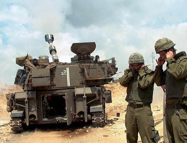 Original caption: Israeli artillery fire on targets in Lebanon 19 May 2000 from a position on the border between the two countries. Israeli army Chief of Staff General Shaul Mofaz said the Hezbollah are attacking Israeli and SLA targets in an attempt to give the impression that they are forcing the Israelis to leave. Israel is in a very advanced stage of the planned 07 July pullout from southern Lebanon. (Electronic Image) AFP PHOTO – AVIHU SHAPIRA